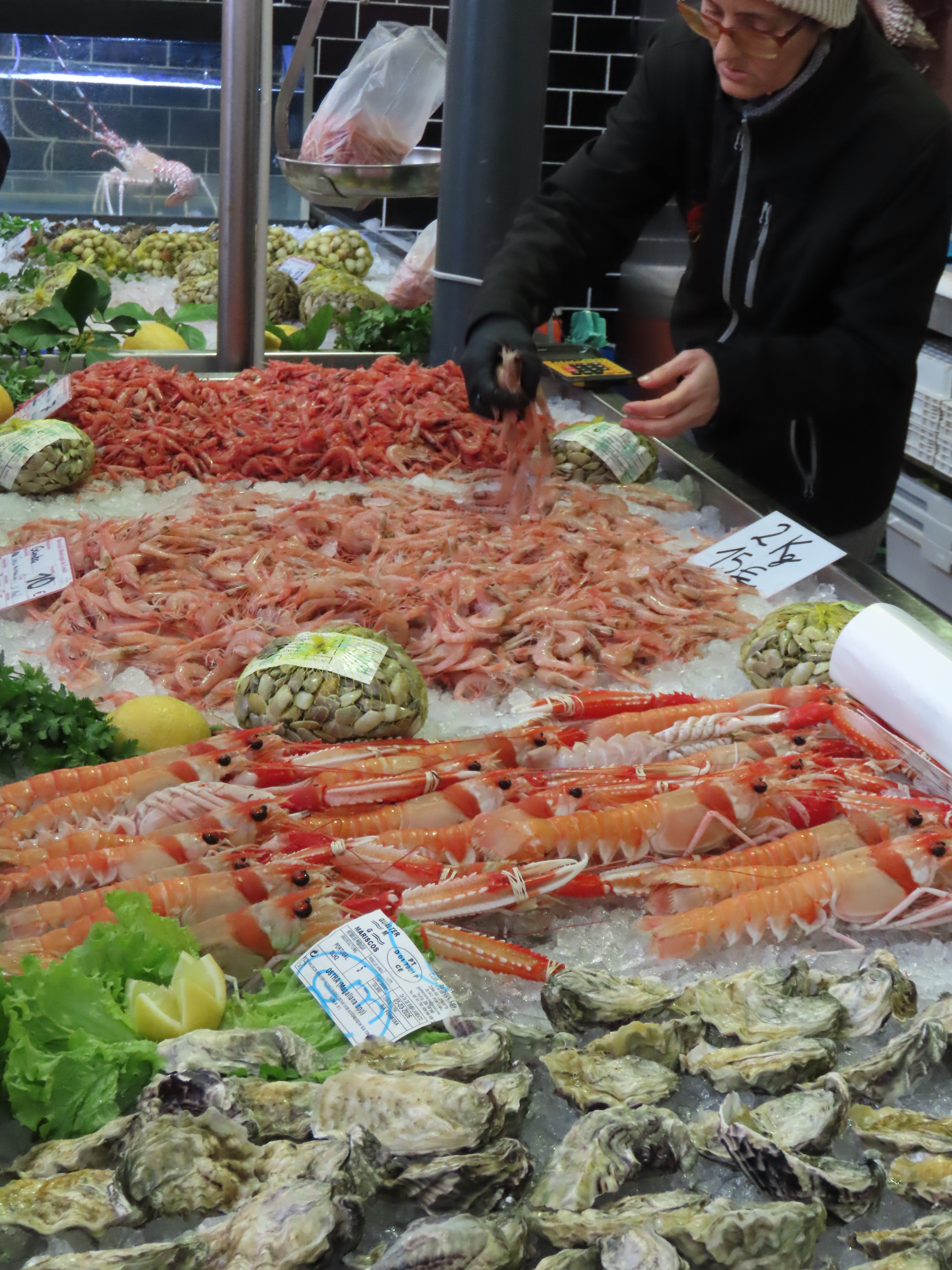 The stalls inside are filled with nuts, olives, beautiful little honey pots, containers of Olive Oil, bottles of Port and Wine. The bread and bakery stalls are always favourites and some of them were empty by the time we got there at 11:30. Our first stop was for a lovely latte and some people watching. There was also an oyster bar, definitely a little too early for me to try (at least that was my excuse).