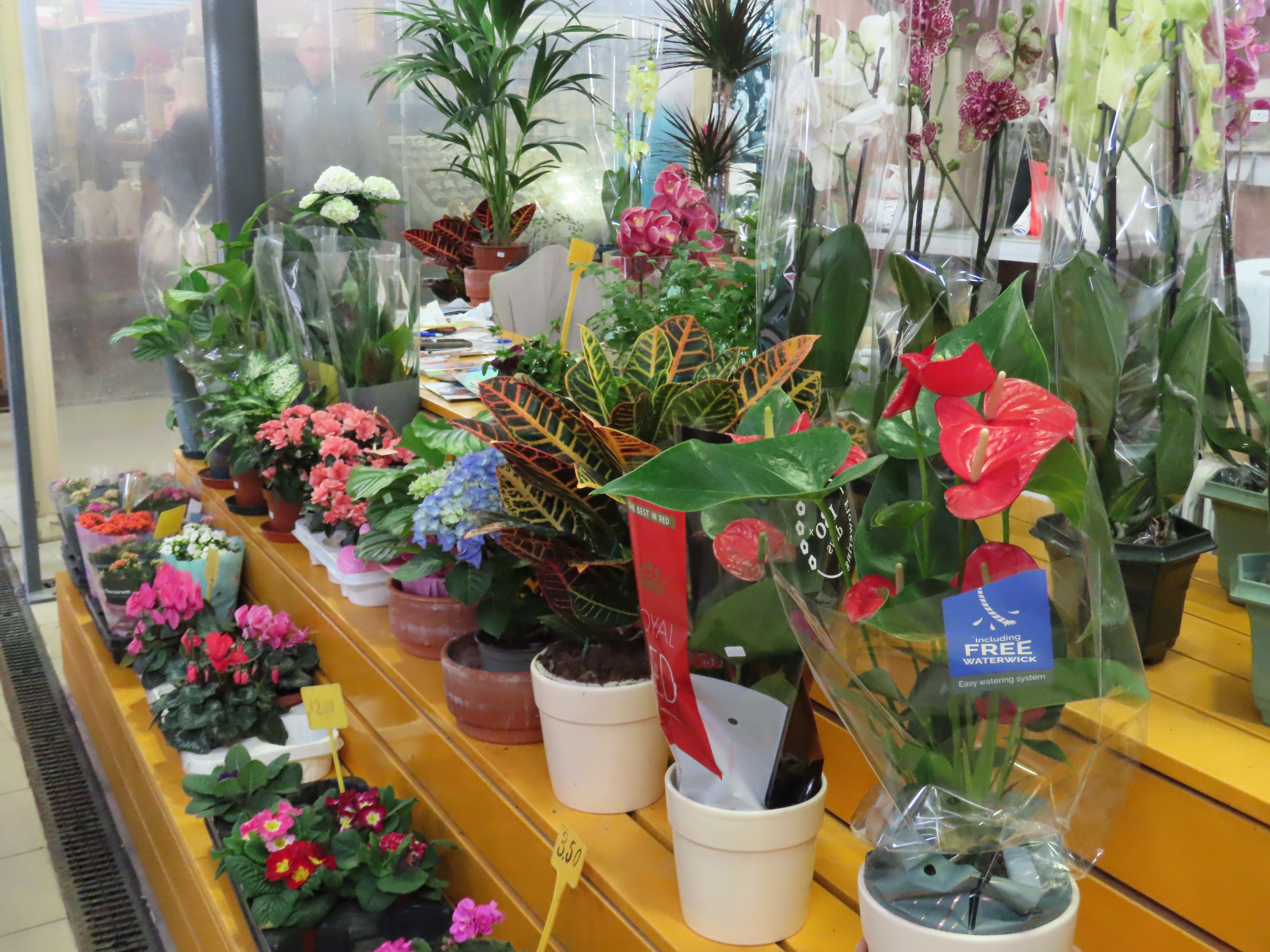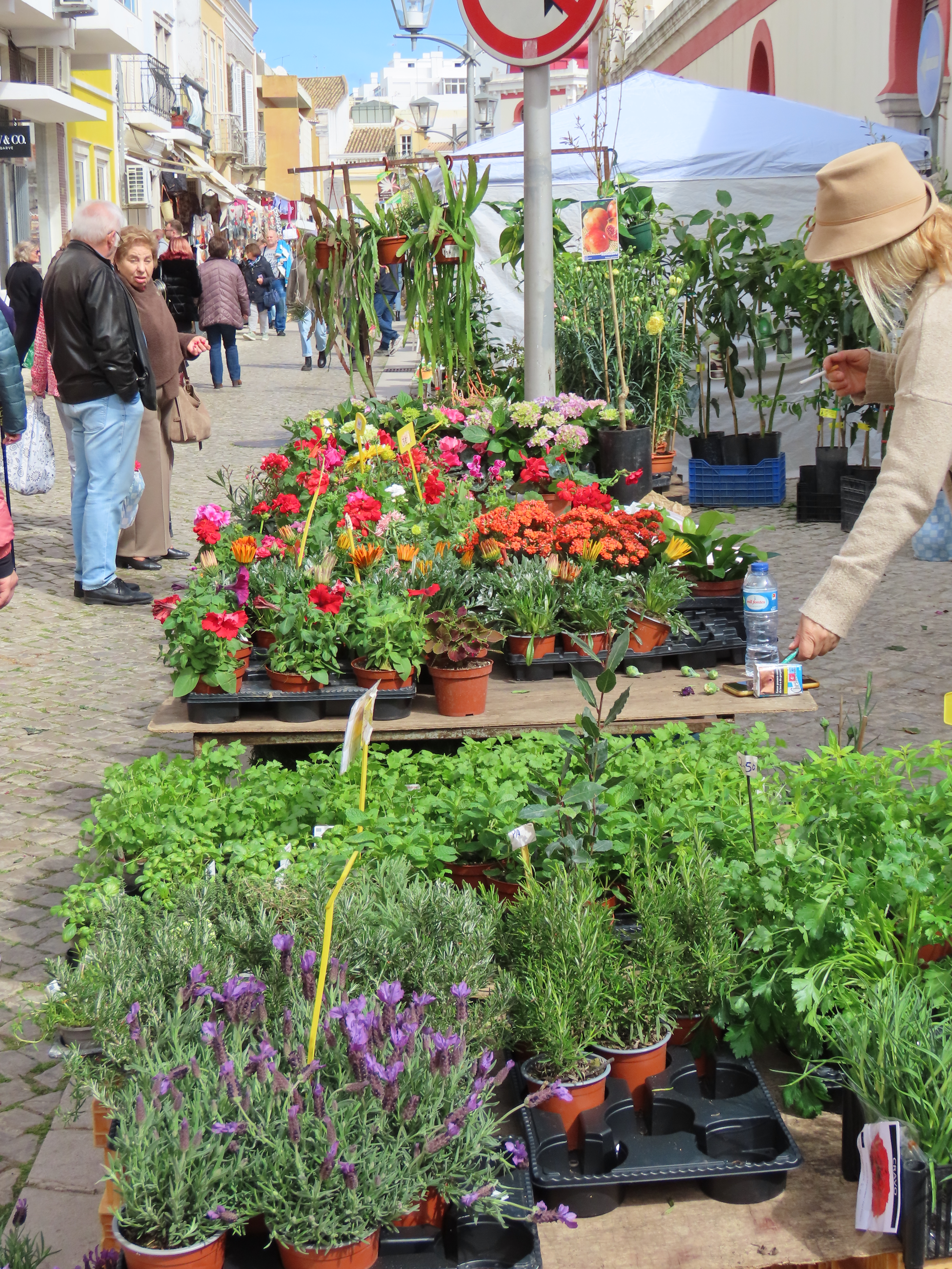 Outside the vibe changes again as people pick through the lovely produce available. Every vegetable imaginable. I picked up some lovely little tomatoes, onion and garlic to go with our olive oil for a pasta dinner. Bright beautiful flowers for planting or to brighten up your room were plentiful and lots of stands with vegetable/herb pots for growing your own.