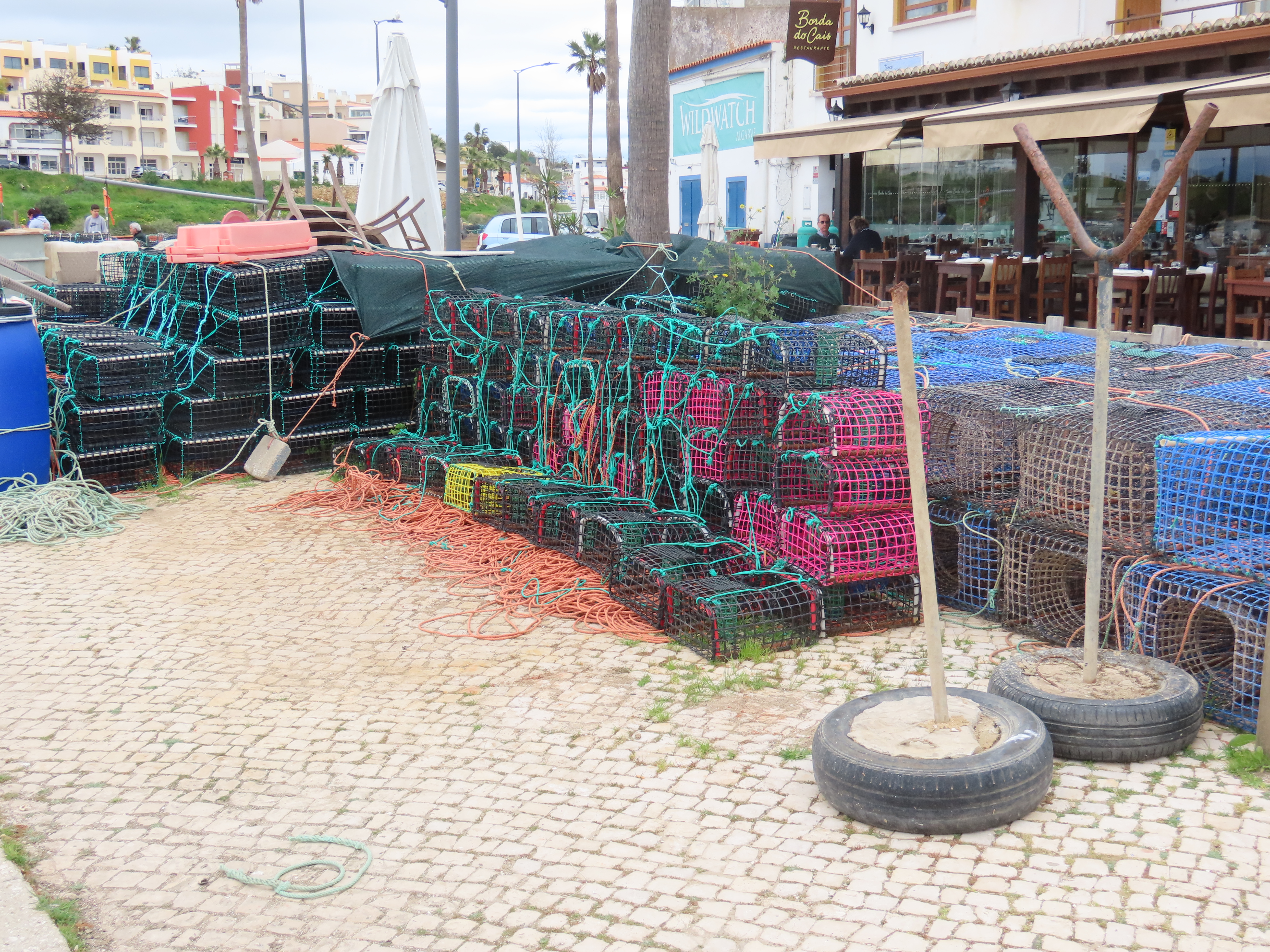 Our visit to Ferragudo was a little chilly, but it wasn’t stopping us. The market square which is full of little restaurants was still there and crazy busy for March. Lots of Canadians filling the chairs and tables. All wearing layers of clothes with maple leaf pins and hats. Sitting under big umbrellas laughing, the weather wasn’t stopping them. You could hear snippets of conversation, most of it about the weather back in Ontario lol.